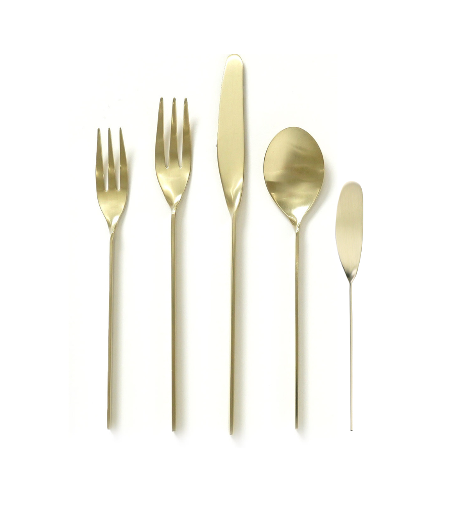 gold cutlery with unique design and thin handles