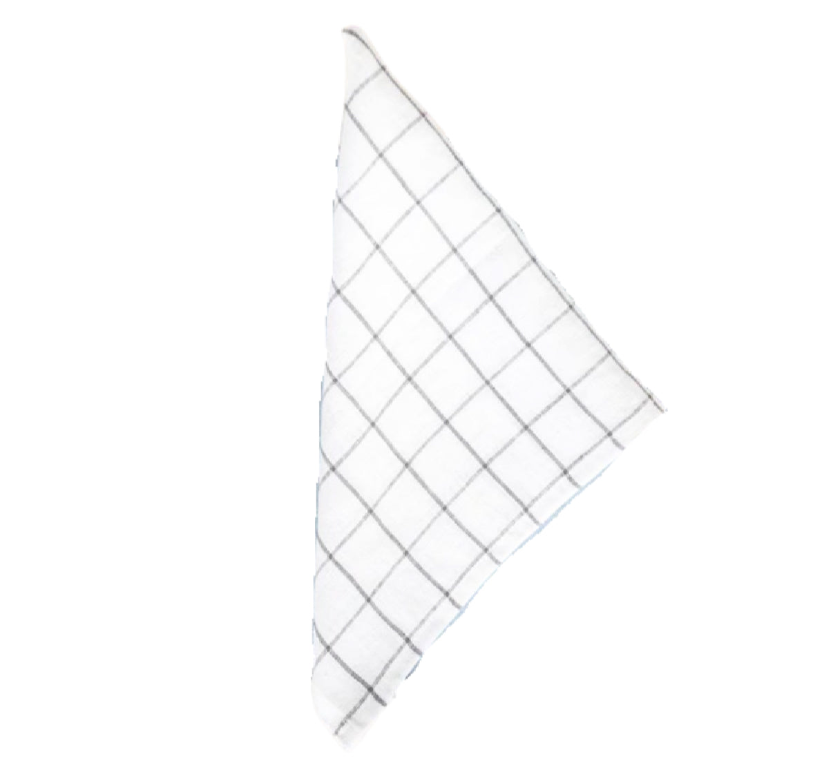 Linen napkin set in charcoal grid (windowpane) pattern.